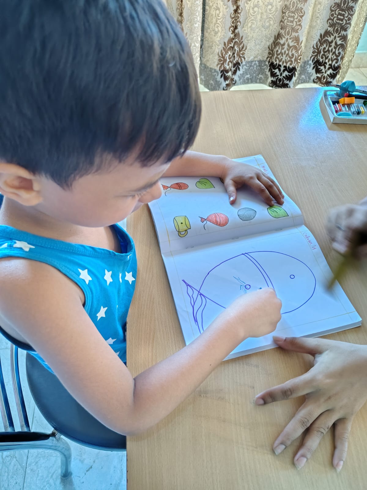 Guided drawing sessions to encourage imagination, focus, and emotional expression through colors and shapes.